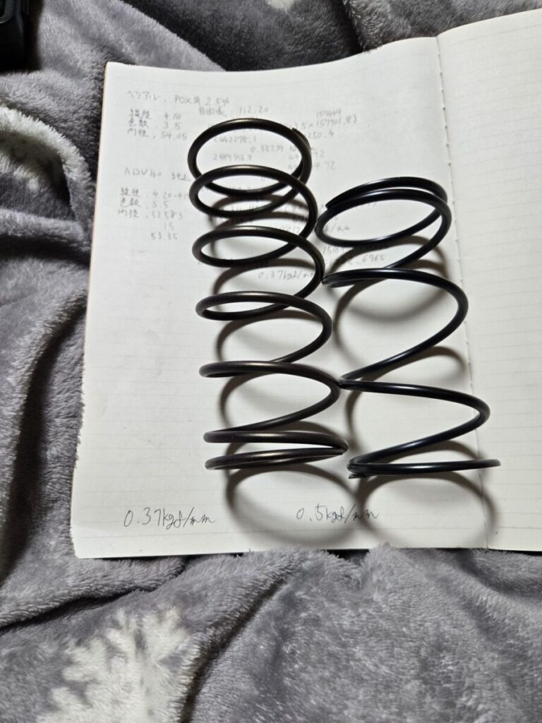 ADV160用のセンタースプリングも各社から出ていたものの、9%アップやら11%アップ等が多くてちょっと硬いかな…と。